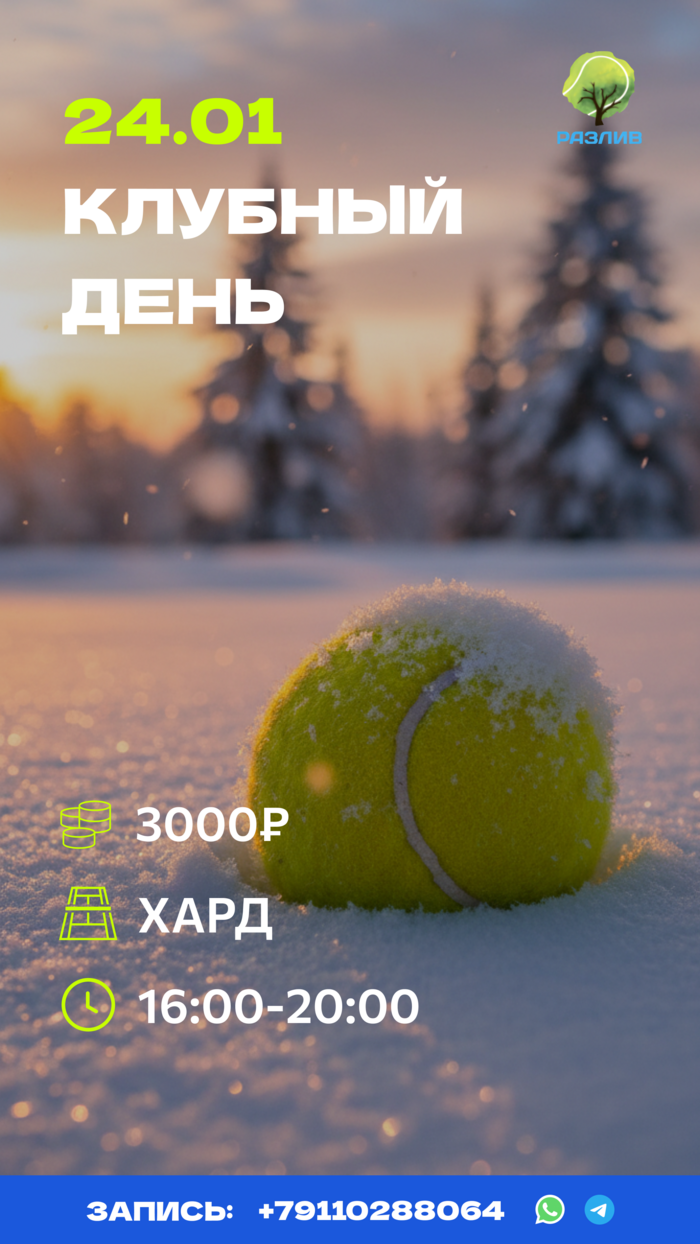 Бронирование корта производится в день тренировки